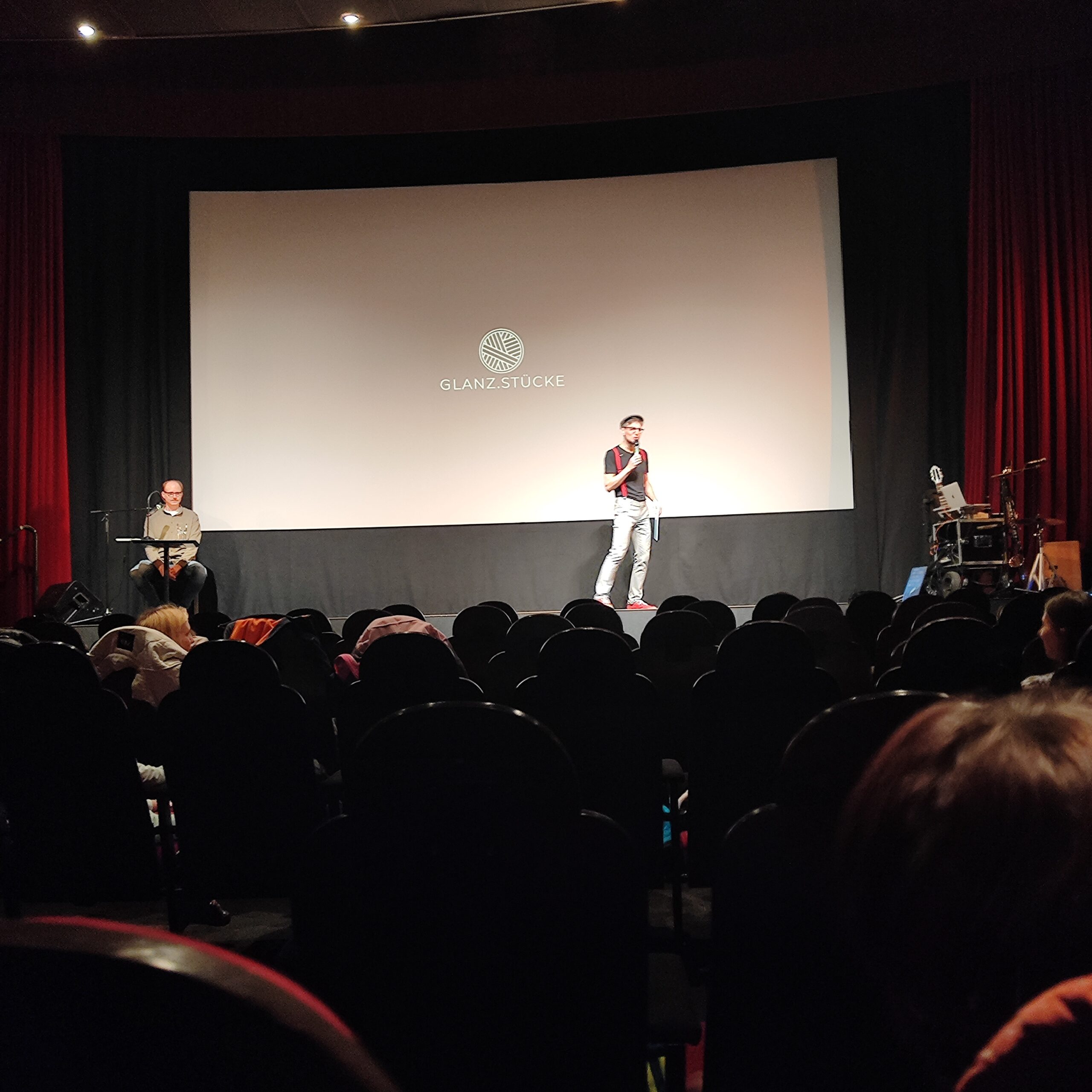 Unser erster Lehrausgang ging nach Baden ins Cinema Paradiso. Dort wurden uns drei wunderschöne Bücher mit musikalischer Live-Untermalung vorgetragen.
