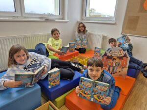 Im Rahmen der Lesung von Margit Auer finanzierte der Elternverein unserer Schule eine neue Klassenlektüre: 26 Exemplare des neuesten Buches „Land unter!“ aus der Serie „Die Schule der magischen Tiere“ können ab jetzt von ganzen Klassen „verschlungen“ werden! Herzlichen Dank an den Elternverein für diese großzügige Spende!