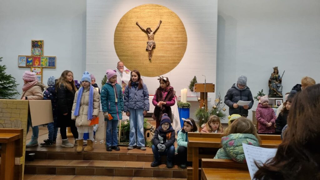 Theater, Lieder und Gebete der Kinder sowie das Weihnachtsevangelium, gelesen von Pfarrer Jochen Maria Häusler, fügten sich zu einer gemeinsamen Botschaft zusammen: Weihnachten ist das Fest einer stillen, tiefen Freude, das Fest der Freude über das Christkind in der Krippe. Eine Freude, die tief in uns entsteht und in Liedern voller Dankbarkeit und Liebe ihren Ausdruck findet.