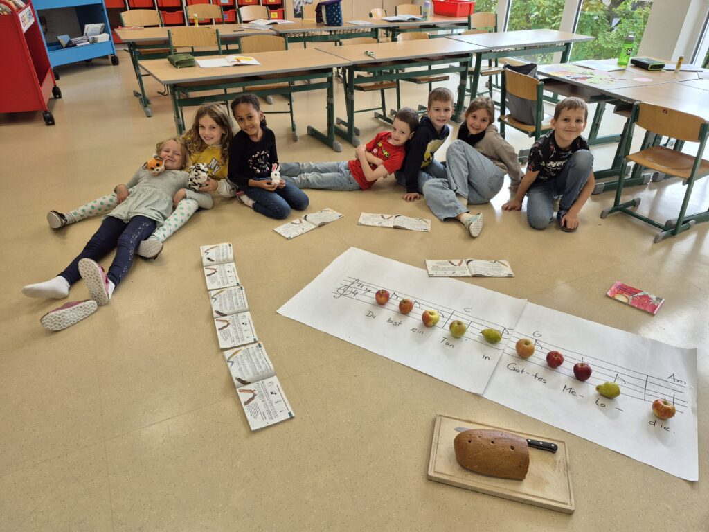 Den Kindern im Religionsunterricht schmeckten dann die Äpfel, Birnen und ein ganz frisches Brot auch ganz ausgezeichnet!